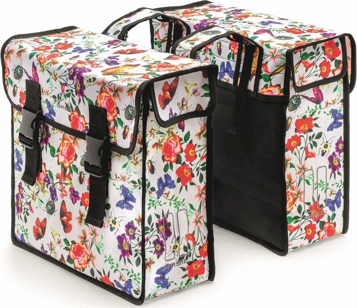 De Basil Mara XL Double Bag is een stijlvolle dubbele fietstas voor achterop een dames- of herenfiets. Deze zwarte fietstassen zijn ook uitstekend geschikt voor een e-bike. Zet je je in voor het milieu en ga je daarom liever met de fiets naar de supermarkt dan met de auto? Dan is deze dubbele fietstas een interessante aankoop. Dankzij de extra grote inhoud van 35 liter is hij ideaal om al je boodschappen in op te bergen. De dubbele fietstas is ook een uitkomst als je in het weekend graag lange fietstochten maakt en een hele dag onderweg bent. Zowel je regenpak, bandenplakset als lunchpakket zijn dan veilig op te bergen. De Basil Mara XL is gemaakt van waterafstotend polyester, waardoor de inhoud van je tassen niet snel nat wordt. Wel zo handig. Je sluit de tas af met behulp van kliksluitingen en je bevestigt de fietstassen met riempjes aan de bagagedrager van je fiets. Aan de bovenzijde van de tassen vind je twee banden ten behoeve van bijvoorbeeld ledverlichting, een snelbinder, kinderzitje of veerklem. De dubbele reflectiestrepen op alle zijkanten garanderen jouw zichtbaarheid in het verkeer. Basil heeft naast deze dubbele fietstas nog veel meer tassen en andere producten in het assortiment. Bekijk het volledige aanbod elders op de website. Eigenschappen: De Basil Mara XL is een dubbele fietstas met een totale inhoud van 35 liter. Dubbele reflectiestrepen aan alle zijkanten zorgen ervoor dat jij altijd veilig de weg opgaat. De tas is gemaakt van waterafstotend polyester, maar het is niet aan te raden om je fiets tijdens een flinke regenbui gewoon buiten te laten staan. De dubbele fietstas bevestig je aan de bagagedrager van je fiets dankzij praktische riempjes.