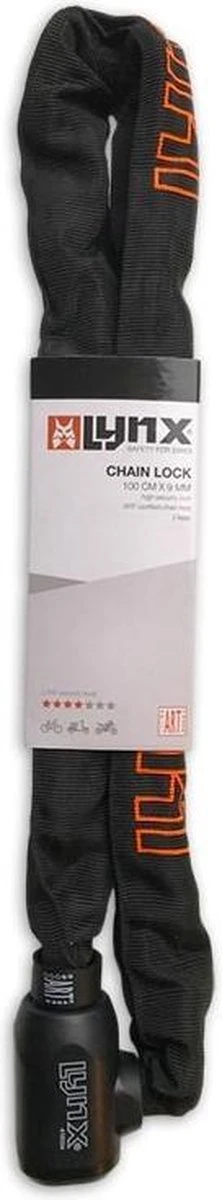 Met dit 100 cm lange ART 2 kettingslot van LYNX is iedere fiets maximaal beveiligd tegen diefstal. Het slot is voorzien van een vaste kop, waardoor het makkelijk in gebruik is. De netjes afgewerkte slotkop heeft een verschuifbaar afdekkapje om zo vuil en vocht buiten te houden. Dit slot maakt het mogelijk om een diefstalverzekering af te sluiten bij de fiets dankzij het ART 2 keurmerk. De 9 mm dikke ketting is omhult met een zachte nylon hoes ter voorkoming van lakschade aan je fiets.
