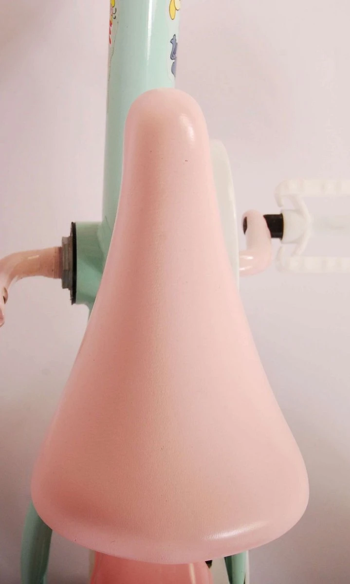 Het leren fietsen kost tijd, moed en doorzettingsvermogen! Maar met wat hulp uit de Tovertuin en een veilig doortrapsysteem vordert dat moeiteloos. Deze mintblauwe met lichtroze 10 inch kinderfiets (met een framemaat van 20 centimeter) is uitermate geschikt voor de eerste ervaringen op de fiets.